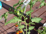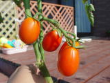 多分これはフルーツ・トマトの一種かと思います。 去年よりは小ぶりですが 真っ赤に美味しそうに色着きました。 でもこれは真ん中の娘が全て食べてしまいます。 勝手にちぎって。。。