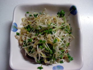 * もやしとカイワレを混ぜて、ドレッシングをかければ出来上がり〜
