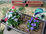 4/19 ピンクの可愛い方はすぐに花びらを 虫さんに食べられちゃって〜 ブルーの方は株が結構大きくなっていい感じです。