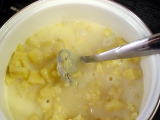 * 鍋に水切りしたさつまいもと牛乳、バター、砂糖を入れて火にかけます。