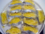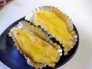* アルミカップに入れて、黄身をハケなどで塗ります。