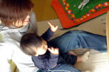 | まりちゃんが遊びにきました。(平成15年12月5日) ママの高校時代のお友達が、研修場所の京都(舞鶴)からおーちゃんに会いに、 週末を利用して淡路まで来てくれました\(^^)/ まりちゃんとおーちゃんは、 おーちゃんが3ヶ月のときに会ったっきりの、久しぶりの再会です(^-^)^ 夜11時に到着したのですが、おーちゃんは起きていて最初は泣いたけど、遊んで くれるまりちゃんがすぐにスキスキ!になりました。まりちゃんが『おいでー。』と言うと、 手を出して行こうとします d(⌒o⌒)b すごいぞ!まりちゃん! |