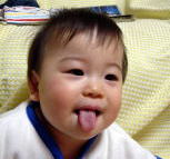あっかんベー。(平成15年12月21日)なぜかいきなり、あっかんベーがマイブームになったおーちゃん。 思い出しては、頻繁にあっかんべーをしています。 今日はジャスコにお買い物に行きました。最近ベビーカーに長い間 乗るのは嫌いになったみたいで、お買い物の間、パパがずーっと抱っこ しています(+o+) |