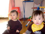 ファミリーで鍋したよ&おーちゃんたっち。(平成15年12月13日)![]() 今日はりょうくんファミリーと鍋をしました。さすがにちびっこ 2人いると、ゆっくりは食べられないけど、それも思い出だよね(^-^) おーちゃんは、パパとりょうくんパパが一緒に『おいでー。』という と、りょうくんパパにいきました。パパは『ショックやわー』と一言。 さすがにもう慣れたのか、おーちゃんは泣きませんでした\(^_^)/ りょうくんパパが『ホームページのせてくれー』と言っていたのでのせ ます。(笑) りょうくんファミリーが帰ってから、お風呂に入るときに おーちゃんが数秒たっちしたのをパパママ二人で見ることができました(^O^)v |