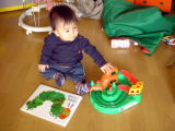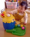 パパとママからのお年玉(平成16年1月4日)おーちゃんにちょっと遅いけど、パパとママからのお年玉です。 プーさんの『いっしょにかぞえて』です。ずっとほしかったんだけど ジャスコで3780円だったので考えていました。いつものごとく ジャスコでほしいなあとみていると、なんと一つだけ値札が 2980円!(おそらく間違ってる?)勇気をだしてレジに持って いってみるとその値段で購入できました。↑(^^_)♪ 早速お家で遊ぶとおーちゃんは、上のあなに入れることを 覚えたらひたすら入れてます(^_-) そして、玉がなくなったら ポットを覗き込んでひっくり返します。大ヒットの予感です。((o(^-^)o)) |