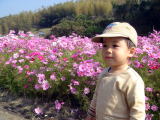 コスモス祭り。(平成16年11月9日)今日は町のイベント『コスモス祭り』でした。コスモスが満開 でとてもキレイ〜♪きいろのコスモスも咲いていて、いろいろな 色があるんだなぁと改めて思いました(^-^) おーちゃんはお花を 触ったり、花の周りを飛び回ってるハチやてんとうむしを眺めたり 楽しんでいました(^^) さつま汁やポンがしの振る舞いがあり、おーちゃんはお腹 いっぱい食べていました。風船やシャボン玉ももらって帰りましたv(^^)v |