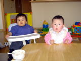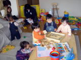 お友達とあそびました!(平成16年2月10日)今日は午後からおうちで、ひなちゃん(11ヶ月)、ひとみちゃん (1歳)、えみちゃん(1歳)、あおいちゃん(10ヶ月)と遊びました。 おーちゃん以外みーんな女の子d=(^o^)=b おーちゃんは最初、 みんなの女の子パワーにおされぎみ・・(おーちゃんと、えみちゃん 以外みんなあんよが上手なの。)でも少ししたら、元気にみんなで 遊べたよ(^_-)-☆ イチゴとおやつをいっぱい食べました(^-^) ママもお友達といっぱいしゃべれて楽しい時間を過ごしましたv(^^)v |