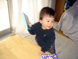 | Bounce&食い地(平成16年2月5日) 最近おーちゃんはPA1の『We like to bounce』を聞いて机につかまりながら、膝をまげた りのばしたりして弾んでいて、曲を覚えたのかなーと思ってたんだけど、今日ママにじゃれ ついてつかまり立ちをした時に、ためしにママが『Bounce!』と言ってみたらやっぱり弾み だしました。ちゃんと覚えてるんだなー(^^) 昼ごはんを食べた後、机の上に離乳食の切り抜きや本を広げて、次のメニューを考えて いたら、おーちゃんは大きな口を開けて、切り抜きの写真めがけて顔を突っ込んでいきま した。 ママがえっ!と思った瞬間『ゴチン!』と机に顔をぶつけて、泣き出してしまいまし た・・(;´д`) おーちゃん、それは食べられません・・・(×_×;) |