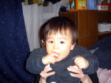 ぴょんぴょん&節分。(平成16年2月3日)今日は、ぴょんぴょんでした。みんなで楽しく遊べたよ(^^)v 来月 で終了なので、修了証書に使う手形をとって、家族写真とおー ちゃんプロフィールを提出しました。来月できあがりをもらうのが 楽しみ〜♪ 夜は、おーちゃんはパパとママの巻き寿司をつまみ食いして、 豆まきをしました。おめんはイヤイヤとかぶってくれなかったよー。 |
