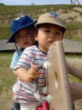 | ゆうくんと。(平成16年5月18日) 今日は午後から、お友達のゆうくん(1歳5ヶ月)と遊びました。今日は、車でももちろん 遊んでいたけれど、ゆうくんと一緒にクイックルワイパーでも遊んでいました(笑) こうやってじょじょに、お友達と一緒に遊ぶようになっていくのかな〜(^-^) |