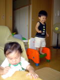 お友達が遊びに来ました。(平成16年8月10日)![]() 今日はママの大学時代の友人たかちゃんと、旦那さんのなおくん、 そして8ヶ月のゆうくんが里帰りするついでにお家に遊びに来てくれ ました(^-^) 去年来てくれたときは、たかちゃんは妊娠中。そして おーちゃんは6ヶ月・・。おーちゃんは成長したもんです(笑) ゆうくんと会うのは初めてだったけれど、人見知りもせずかわい かった〜♪おーちゃんもこんな時期があったんだよな〜としみじみ 思ってしまいました(^^) おーちゃんは初めは恥ずかしがっていた ものの、すぐにかいじゅうに・・(;^_^A 次はいつ会えるかな〜☆またまた楽しみです(^-^) |