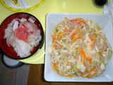 海鮮ちらしパーティー(平成17年9月26日)今日は月に一度のお楽しみ♪ サークル『もんちっち』の メンバーで昼食パーティーの日でした。今日のメニューは 『海鮮ちらしと皿うどん、牛乳かん』でした〜♪ 10時半にお友達のようママちゃんの家に集合!8家族 総勢19人が大集合!! 大人たちはワイワイがやがやとさっそく料理開始。子供達は たくさんあるおもちゃでけんかしつつも仲良く遊んでいたよ(^-^) 12時過ぎにご飯が 出来上がり、さっそく子供達から昼食タイムでした(^^) おーちゃんはすごい勢いで 皿うどんを食べていました(;^_^A 子供達のご飯が済んだ後、大人達のランチタイム♪ おいしい料理に舌鼓を打ちながら 食べました〜v(^^)v たくさん食べて、お持ち帰りの皿うどんまでついて会費800円!! すごくお得です〜! おーちゃんは2時〜3時くらいまでみんながワイワイ賑やかな中で昼寝をして、起きたら またみんなで遊んでいたよ♪ きーくんも特にぐずる事はなく、いい子にしていました(^_-) 4時過ぎにお片づけをして解散。 ようママちゃん、お邪魔しました〜m(._.)m 来月は『おでんときのこ炊き込みご飯』パーティーです♪ 楽しみ楽しみV(^0^) |