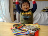 | 図書館に行きました。(平成17年1月7日) ママの調子がよくなくって(ご飯を食べたら嘔吐してしまいます(T0T)、家に閉じこもり なので久しぶりに図書館に行ってきました。 おーちゃんは外に出たのがうれしくて、図書館に行くまではしゃいでいました(^-^) 図書館では車の絵本を見つけて、自分で椅子に座って読んでいました(^^) ママもゆっくり 雑誌や本を選べたのでよかった〜♪ おーちゃんにも絵本を借りて(もちろん車の絵本) 帰りました(^ー^) |