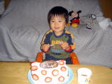 | パパ誕生日♪(平成17年1月22日) 今日はパパの誕生日(^-^) 買い物に行って、外食してといろいろ計画をしていたけれど おーちゃんの体調を考慮して、パパだけで買い物に行ってもらうことにしました(;^_^A おーちゃんの熱は朝には下がっていて、元気だったのですが、鼻水はやっぱり出ています。 パパには悪くて残念だけど、ひどくなったらもっと悲しいもんね(^^;) パパは午前中の3時間 くらいかけてた〜くさんの買い物をしてきてくれました(;^_^A お昼過ぎに帰って来てから すこし休憩して、おやつにママが作ったチーズケーキを食べました(^-^) このチーズケーキ実は失敗してしまって・・・(T0T) 味はおいしかったけれど、形が いまいち・・・。やっぱりチーズケーキは難しい〜(→o←)ゞ もっと修行しなくちゃね!! パパお誕生日おめでとう〜☆♪ |