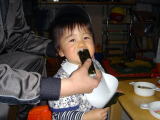 京都最終日。(平成17年2月13日)今日は、朝早くからパパとママとお散歩へ出かけました。ばあば の家の周りにはパパが子供の頃遊んだ公園がいっぱい! お散歩 しつつたくさんの公園に寄って、すべりだいをしたりシーソーを したりブランコをしたりして遊びました(^^) 3人で1時間ちょっと お散歩して帰りました。 ばあばのお家に着くと、しばらくして お昼寝。 その間にママはお昼ご飯のお好み焼きの準備を しました。おーちゃんは最近野菜をぜんぜん食べてくれないので、野菜を細かく切って たくさん入れました(^o^) パパとばあばと一緒に食べたからか、すごくたくさん食べてくれ ました♪やった〜! ご飯のあとは淡路に向けて出発です。ばあばにお別れを言って帰ってきました(^-^) |