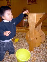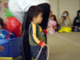 | 園庭開放(平成17年2月8日) 今日は近くの保育園の園庭解放日でした。まず、年中・年長組さんの桃太郎の劇を 見せてもらいました〜。おーちゃんはおとなしくじーっと見入っていました(^-^) その後 ボランティアさんの、絵本の読み聞かせに参加して何冊か聞いた後、年少さんの劇『三匹 やぎのがらがらどん』を見せてもらいました。おーちゃんと同じ歳の子達もちゃんと先生 の言う事を聞いてしっかり演じてる〜!!びっくりしました(^o^) そのあと、年少さんと 一緒にお遊戯をしたのですが、この頃になって、おーちゃんがやっと本領を発揮して きた〜(笑) 楽しそうに踊っていました(^-^) おーちゃんは帰ってきて、お昼ご飯を食べて2時間半ほどぐっすりお昼寝しました。 |