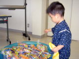 七夕祭り。(平成17年7月1日)今日は町の子育てセンターの七夕祭りでした(^-^) 朝9時からだったので急いで支度をしました。ユウ君 ママに迎えに来てもらい一緒に行きました。 ママと おーちゃんは久しぶりの町のサークルです(^^) ママにべったりかなぁと思っていたけれど、いつも遊んで くれていたお友達がたくさんだったので、とても楽しそう に参加していたよ〜♪ いつものお友達みんなで、じんべさんを着て参加しました(^-^) ついてすぐ、短冊にお願い事を書いて、大きい笹に飾りつけ♪飾った枝は、帰りに いただいて帰ってきます。 お話し会では、すごく興味津々でお話を聞く事ができてたおーちゃんでした♪ママの ほうが床に直接座っていたので、途中しんどくなってイゴイゴしていました〜(^^;) その後、いつもの曲に合わせてダンスを踊り、みんなで記念撮影(^^) いい顔で撮れてる かな? そしてフリータイムは、おもちゃつり・ヨーヨーつり・お菓子つり・くじびき・スーパーボール すくい・カキ氷・ポップコーン・綿菓子・たこせんべいなどなど、参加費300円とは思えない 充実した内容でした〜\(^O^)/ ママも久しぶりに参加できてすごく楽しかった〜♪ お友達みんなとゆっくりのんびりお話 して帰ってきましたo(^o^)o 帰って来て、おーちゃんは2時間半ほど昼寝をして(ママもちょっと横になりました) 少しママと遊びました。今日はパパが夜、職場のバーベキューだったので、夜ご飯はママと 二人で食べてお風呂も入り、7時にはお布団へ横になりました。 かみなりが鳴っていた おかげ(?)で『いい子に歯磨きしたらかみなりさん来ないよ〜』とママがいうとすんなり 歯磨きしてくれたので(本当はこんな言い方しちゃいけないなぁと思いつつ) ママはちょっと ホッとしました(;^_^A それから1時間と少し絵本タイムを過ごして、8時過ぎには就寝 しました(^-^) |