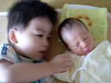 破水しました。(平成17年7月18日)今朝5時ごろ破水しました〜。 取り急ぎご報告まで。 午後1時11分に、きーくん誕生しました。ママお疲れさまー。 46cm、2736グラムの男の子でした。 (パパより) 朝5時に破水して、病院に電話していたらおーちゃんも快調に起きてきたので、6時には 入院。陣痛の痛さも間隔もバラバラだったけれど、11時頃からあれよあれよという間に 本格的に痛くなり、1時過ぎに元気に誕生しました〜V(^0^) その後、2時間の カンガルーケアで、きーくんをず〜っと胸の上に抱いてきーくんのぬくもりを感じて いました♪ お産後20分で、スタッフの方に手伝ってもらっておっぱいを含ませました〜(^-^) パパとおーちゃんもお産に立ち会いました(^^) パパはおーちゃんのときに続いて2回目 の立会い。おーちゃんはどんなふうに反応するのか少し心配だったけれど、最後にママが 『あ〜』と言いながら息を吐いて声をだしていたので、『ママ、うるさい〜。シ〜よ!』と 言っていました(苦笑) でもきー君誕生の瞬間は、『赤ちゃん、頭でた〜!』と実況を しながら神妙に立ち会っていました(^^) おーちゃんの時と同様、パパがへその緒にはさみを入れました(^_-) きーくんが産まれると、おーちゃんはママにに遠慮しているのか、『パパ抱っこ!』の 連続!おーちゃんを気にかけて、甘えさせられる時は甘えさせてあげなきゃね(;^_^A さっそくこの日の夜から赤ちゃんのお世話です〜。お腹からでたばっかりで不安なのか あまり寝てくれなかったよ〜(^^;) |
