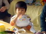 | きーくん離乳食開始!(平成18年1月15日) きーくんの風邪もぼちぼちよくなってきて下痢も治ったので、離乳食を開始することに しました〜。10倍がゆを作り、みんなのお昼ご飯の前にきーくんの離乳食タイム〜♪ ママがビデオ係りになり、パパがおかゆをきーくんのお口の中へ・・・。 きーくんは一瞬にして変な顔に〜(笑) おーちゃんが初めての離乳食を食べた時と同じ 顔してました♪ 明日からもぼちぼち進めていきたいと思います(^^) |