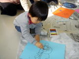 親子ふれあい講座(平成18年1月20日)今日は町のサークルの親子ふれあい講座でした。 朝からきーくん号泣の中、ママは家事をがんばり、10時前に 会場につきました。 今日は凧を作って、みんなで凧揚げの日。 凧は型が出来て いてあと、好きな絵を描いたり凧にストローを貼って補強する だけ! おーちゃんは自分の思うとおりに色を塗って 凧を作っていたよ(^-^) 出来上がった凧をもって外の運動場にでて、思いっきり凧揚げを 楽しんでいました♪ きーくんもベビーカーに乗ってその様子を見ていたよ♪ 役員さんが、市販の凧を揚げたり連凧を揚げたりしてみんなに見せてくれました。 最近凧揚げしている風景もあまり見なくなったので、いい体験ができたなぁ☆ 思う存分走り回ったあとは、また部屋に帰り、みんなでぜんざいを食べました(^-^) あったまった〜(^^) |