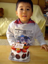 3歳になりました〜♪(平成18年1月24日)今日はおーちゃんの3回目の誕生日です♪ 3歳ってすごい大きな節目だなぁというのがママの感想です。 トイレにもいきなりいけるようになったし(ウンチはまだです が・・・)日本語のおしゃべりもとっても上手になってきました。 今まで絶対しようとしてくれなかった、ズボンなどを自分で 履こうとチャレンジするようにもなってくれました。 うれしい成長です\(^O^)/ 午前中、今日の夕食の買い物(おーちゃんのリクエストで ピザです)をして、ケーキを取りにいきました。 午後に、新築している家のことで京都からのお客様が いらしたので、パパはお仕事を早上がりして帰ってきました。 夜ご飯のあとにケーキを 食べるのはきっとお腹に入らないだろうということで、おやつタイムに食べることに(^-^) ハッピーバースディーの歌を歌ってケーキにろうそくをたてて、おーちゃんとっても嬉し そうに吹き消すことができました♪ (ずーっと『キャンドルする??』って言っていた くらい楽しみにしていました。) そしてパパとママからのお誕生日プレゼント(^^) 今年は『ボブと働くブーブーズ』の 車たちと、その車が走る道路。おーちゃんそれからずーっとそれで遊んでいます(笑) 鹿児島のおばちゃんからも、誕生日プレゼント(トーマスのいろいろセット)が送ってきたり、 お隣のなっちゃんからもプレゼントをもらったりしました〜(●⌒∇⌒●) みんな、ありがとう〜♪ 夜ご飯は、ホームベーカリーで生地を作ったママの手作りピザ♪ お腹いっぱい食べ ました\(^O^)/ この3歳という一年がおーちゃんにとって、楽しく素敵な一年になりますように・・・☆ |