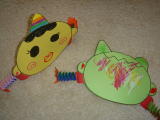 サークル(平成18年1月27日)今日は町の子育てサークル『カンガルー』の日。 児童館についてすぐ、おーちゃんはおもちゃで遊びだしました。 今日は節分の鬼の面作りをしたよ(^-^) おーちゃんの鬼の面は 色塗りに全く手をださなかったので、凄いものができました(笑) きーくんは、このお面をかぶすと号泣・・・(苦笑) このお面を 被って、みんなで記念撮影♪ いい記念です! その後、1月生まれの子供達の紹介。おーちゃんもお誕生日の歌をみんなに歌って もらったよV(^0^) 先生が作ってくださった首飾りももらいました(^_-) |