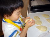 パン作り(平成18年4月4日)今日は朝からおーちゃんが『しんどいなぁ。寒いなぁ』を 連発していました。熱はなさそうな感じだったので、徒歩 5分のところにあるポストまで、おーちゃんがママ妹に書いた ハガキを出しに散歩。 午前中は絵本を読んだり折り紙を したり、DWEのレッスンをしたりして過ごしました。 午後からは、せっかく大きなガスオーブンが付いたのでパンを 作ろうと思い、おーちゃんが昼寝をしている間にHBの『ぱんくん』でパンの生地を作って おきました。出来上がる頃におーちゃんが起床。一緒にロールパン作りをしました。 (といってもくるくる巻くだけだけど・・・笑) 思ったより上手に巻いてくれておーちゃんも 満足そう♪ オーブンも今までのオーブンレンジとは比べ物にならないくらいいい感じで、 ママも大満足(^^) 焼いていたらじいじとばあばとイトコのシンちゃんが遊びにきたよ。 おーちゃんとしんちゃんはおもちゃを取り合いしながら、仲良く遊んでいました(^-^) きーくんもじいじとばあばに慣れてきたのか、名前を呼ばれたらちゃんと抱っこ して〜!と手を出すようになってきてます。 ばあばには、帰るときにおーちゃんが作ったバターロールのおすそ分けをしました。 夕方、ちょっと微熱があったおーちゃんです(→o←)ゞ |