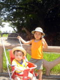 | お墓参り(平成18年8月12日) 今日はじいじ、ばあばと一緒にお墓参り。じいじ方のお寺を参り、嵯峨野、嵐山を通り 亀岡へ。ここはばあば方のお墓があります。お墓を参ったあと、ばあばの実家へ。 パパのイトコの子、ガクちゃんとミキちゃんが遊びにきていました(^-^) 仲良く遊んでるのか なんなのかという微妙な感じでしたが(笑)喧嘩することもなく、おもちゃなどを貸して もらって遊んでいたよ(^-^) 夕方帰り着いて、じいじばあばと一緒に夜ご飯を食べに行きましたが、ママの体調が 悪く、頭痛がし始めた(T0T) 頭痛から吐き気もしだしてきたのでつらかった〜(汗) 結局ママは食べず、おーちゃんも実家に泊まらせてもらって帰ってきました。 お風呂に入って8時過ぎには横になりました(;^_^A |