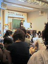 | DWE使いこなし講座(平成18年8月22日) この間、ジャスコに行った時にたまたまDWEの営業イベントに出会いました。そのとき ユーザーであることをつげたら、この講座に誘ってもらったので、滋賀県の草津市まで 3人で行ってきました。 ママがこのへんを車で走るのは初めてだったので、ちょっと ドキドキ(苦笑) 渋滞もなく40分くらいで到着しました。 10時半開始で、30組ちょっとぐらいの親子が参加していたよ。子供達と先生が英語で 遊ぶコーナーがあったり、SBSの映像を見たり。 おーちゃんはモジモジくんで、ママの もとを離れず、きーくんはあっちうろうろこっちうろうろ(ハイハイで)。 ママはあまり ゆっくり参加できず(;^_^A なんだかあっという間の1時間半でした。 でも、明日のテレフォンイングリッシュからレッスンに入ってみようかなぁと思わせてくれる 内容だったので、ためになったかな(^-^) |