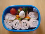 お弁当開始(平成19年4月17日)とうとうお弁当が始まりました・・・・。ママは不器用アンド手際が 悪い・・・。それを自分でわかっているのでちょこちょこ夜中目が 覚めてしまって、結局5時半起床。 おーちゃんにどんなお弁当がいい??と聞くと「ウルトラマン」と 答えていたのでウルトラマン弁当にすることに。 ご飯にハムとチーズを使ってウルトラマンの顔を作りました。 そしておかずは煮込みハンバーグ。たったこれだけのお弁当作る のに結局、パパのお弁当と合わせて1時間・・・。これが続いたらえらいことだなぁ・・・(苦笑) つめるのにもすごく苦戦して大変でした(汗) おーちゃんに見せると踊りつきで喜んでくれました♪ でもご飯が少し多かったみたいで ご飯を何口か残してきました〜。 これから気をつけなきゃ〜! |