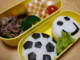 今日のお弁当/参観(平成20年1月10日)ママの風邪は、昨日の夜、やっと咳があまりでなかったので (パパが買ってきたのどに貼る薬を貼って寝た)ちょっと楽に なってきました。寝ているときが一番咳が出てしんどかったので。 まだ鼻がつまってるものの、なんとか快方に向かっている感じ です。 ママの体調が微妙だったので、今年一番のお弁当を何にするか すごく迷ったのですが、 今日は幼稚園の参観で「サッカー大会」 があったので「サッカーボールとにこにこ弁当」にしました。 *今日のお弁当* ・ おにぎり (のり、ふりかけ持参) ・ 牛肉と玉ねぎのすき焼き風 ・ かぼちゃの煮物 ・ ブロッコリー、りんご、プチトマト ・ キャンディーチーズ 今日は今年初めての参観日。「親子製作とサッカー大会」だったので、パパも休みを もらいパパに行ってもらいました。ママは園に用事があったので(園からいただいた ボールが壊れたので、それを持って行って交換してもらった)サッカーだけ見に行って きたよ! 園につくとちょうど親子製作が終わったところで、上手に作られたお皿が 廊下にならんでいました。おーちゃんとパパのお皿も楽しく出来たようです♪ サッカー大会はクラスが二つに分かれて、トーナメント戦。 おーちゃんはあまり球技 が得意ではないので、ボールに触れないんじゃないかとひそかに思っていたけれど 何度か蹴っていたよ〜(笑) おーちゃんのチームは、天使カップの3位でした。 |