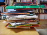 | 図書館へ(平成20年1月19日) 今日も、午前中ゆっくりしたあとお昼ごはんを食べてから図書館へ行ってきました。 今日は、行きにきーくんが寝なかったのでおーちゃんにゆっくり本を読んであげることが できませんでした・・・。 おーちゃんはきーくんに必死に「きーくん、ベビーカーに寝て いいよ」など昼寝をすすめていましたが(苦笑) きーくんの「絵本よんで!」があまりに すごかったので、おーちゃんはちょっとすねて図鑑などを一人で読んでいました(汗) なので、借りる絵本を選んで早々と図書館を後にしました。 (19冊借りました) 3時半ごろになると、いとこのしんちゃんがばあばに連れられて保育園から帰って きました。 それから一緒に遊び、ばあばが用意してくれた夕飯をごちそうに なりました♪ |