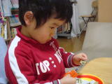 肉まんを作ったよ♪(平成20年1月5日)ママが体調が悪いので、あまり乗り気ではなかったのですが(汗) おーちゃんが作りたい!とごり押ししてくるので、ボンメルシーの 付録の肉まんキットを使って肉まんを作りました。 こねて皮を作ったりするのは全部やってもらい、肉餡を包む 仕上げはママがお手伝い。 仕上げが雑だったので、焼いていて 餡が出てきてしまいましたが(汗)おーちゃんは出来上がりを見て とても満足そう♪ ばあばにも「これおーちゃんが作ったよ〜」 と嬉しそうに持っていっていたよ! おやつにみんなでいただきました♪ また作って みようかな。 |