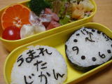 ![]() おーちゃん5歳になりました/今日のお弁当 (平成20年1月24日) 今日はおーちゃん5回目のお誕生日 です。 昨日おーちゃんが生まれるときの様子を ママも思い出しながらおーちゃんに 話をしたのですが、あれからもう5年も 経ったんだなぁと感慨深いものがあり ました。おーちゃんの生まれる時の様子は、ちょっとまだおーちゃんに理解しにくい部分も あったと思いますが、おーちゃんの生まれてくるのがパパもママもとっても楽しみだった ということが、伝わってくれたらいいなぁと思い話をしました。 パパとママからの誕生日プレゼントは自転車。雪の中少しパパと練習していましたが、 思ってたより難しかったのがショックだったらしく、早々に切り上げていました。 夜はおーちゃんのリクエスト通り、じいじとばあばと一緒に手巻き寿司パーティーを しました。(手巻き寿司はばあばが用意してくれました! ばあばありがとう〜〜〜〜♪) ケーキもおーちゃんのリクエスト通り、クリスマスの時期のボンメルシーに載っていた スノーマンケーキ。ママのセンスのなさがはちきれんばかりに垣間見れる飾りつけになり ました・・・・(汗) でも、楽しいお誕生日会になりました☆ 5歳のおーちゃんですが、 ブロック遊びと戦いごっこ(でもいっつもやられています) が大好き。 好きなテレビは、スーパーヒーロータイム♪とカートゥーンネットワーク、 ニコロディオン、ディズニーチャンネル。 きーくんに時々いけずで、時々優しい兄ちゃんです。幼稚園が大好きで、とても楽しく 通っています。園の様子も、家でところどころお話してくれます。体操クラブに入って いますが、体操はちょっと苦手。でも好きで頑張っています。今年、逆上がりができるように なるのが目標。あと自転車に乗れるようになるといいなぁ☆ 怪我にはめっぽう弱い・・・。ほんのちょっと血が出ただけで、もう大騒ぎの大泣きです(爆) 食べ物は、好き嫌いも若干ありますが、わりと何でも食べてくれるようになりました。 お弁当は2段弁当、ほぼ毎回完食してきてくれます♪ ひらがな読みもだいぶ上手になってきました(まだ拾い読みの段階ですが)。カタカナも 認識しだしているようです。英語も読み始めの段階。毎日が成長です。 元気に楽しく過ごせる一年になりますように☆ そして今日のお弁当。 おーちゃんの生まれた時間の時計おにぎりお弁当にしました。 のり切り、すごく時間がかかった・・・・(爆) *今日のお弁当* ・ おにぎり (のり、ふりかけ持参) ・ オムレツ (卵、ほうれん草、にんじん) ・ ウインナー ・ キャンディーチーズ ・ ブロッコリー、 プチトマト、 みかん |