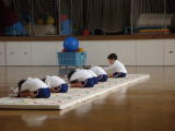 | 体操クラブ(平成20年4月18日) 今日もあいにくの雨模様。 おーちゃんが幼稚園へ行ってからは、きーくんと絵本を 読んだり新幹線のDVDを見たりして過ごしました。 3時半からおーちゃんの体操クラブだったので見学へ。 今日は幼稚園終了後、一時間 遊んでから(6月からこの時間帯は年少さんのクラブの時間になります)のクラブでした。 なので、始まったときにはすでに子供たちのテンションは上がりきっていてなんだか変 な感じ(笑) でも先生がまた上手に子供たちを導いていってくださいました。 やっぱり、おーちゃんは相変わらずの体操オンチですが、それなりに頑張っていたと思い ます。 先週より、倒立の足が上がるようになってきていたなぁなど褒めポイントを 見つけておーちゃんの自信に継げていってあげたいです。 体操が終わり、帰ろうとしていたら今年の担任の先生に会うことができたのでご挨拶。 「今日、朝体操でドッヂボールしたんですけど、おーちゃんボールをキャッチしたん ですよ〜! もうみんなから拍手喝采でした〜♪」 と教えてもらいました♪ こういうちょっとしたことを報告してくれるのでありがたいです。 |