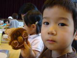 ひよこグループ(平成20年6月4日)今日はおーちゃんの園の未就園児クラス「ひよこグループ」の日。 おーちゃんはお弁当を持って(今日はフッツーのお弁当【笑】 ハンバーグサンドイッチでした)預かり保育、アミーゴに参加 しました。 今日は小麦粉粘土で遊ぼう!ということで、小麦粉に水を 入れてコネコネしたのですが、グループの他の子たちは率先して やりたがるのに対し、きーくんは我関せず・・・(苦笑) 粘土型に手をつっこんだりして遊んでました(汗) 出来上がった粘土で型抜きすることは ちょっとチャレンジ。でもすぐ時間切れ〜(うちのグループは作るのに時間をかけたので) 手を洗い、お待ちかねのおやつタイム〜♪ そうです。きーくんはこれが楽しみでやって 来てるのです(爆) もう喜び勇んでおやつをもらいに行っていましたよ〜。 ママもワッフル をおいしくいただいてきました〜♪ 帰りは園庭で遊びたがった二人ですが、小さい子がたくさんいたのでちょっと危ないかな (園児が混じるとその気はないけど勢い余ってということがあるので)と思い、家の近くの 公園へ。 そこでしばらく遊んでから帰ってきました。 家では、ごはんの時間まで、持ち帰った小麦粉粘土で二人黙々と遊んでました。 そこらへん一帯、乾いた小さい小麦粉粘土の粒が・・・・(泣) 楽しんでるならいいさ・・・・。 |