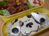 今日のお弁当(平成20年6月10日)*今日のお弁当* ・ BLUEキャラシート(のり、チーズ、ハム) ・ コロッケ(この間作って冷凍しておいたもの) ・ ジャコとニンジン、小松菜の甘辛炒め ・ ウインナー 、パプリカ、りんご、キャンディーチーズ 今日はスカパーのニコロディオンチャンネルから、ブルースクルーズ のBLUEのお弁当です。 おーちゃん的には、3歳過ぎ頃に一度ブームが来て、しばらく して見なくなり、今また再びきーくんと一緒にブームが来ています。 昔はよく、「ブルーの トコロに行きたいなぁ(テレビの中へです)」と言っていたおーちゃんです(笑) |