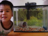 ザリガニ飼うぞ!(平成20年6月22日)パパの許可がおりたので、ザリガニを飼うことになりました。 といっても水槽など何もないので購入しに行ってきたよ。 結局いろいろ買って5000円ほどの出費・・・(汗) ちゃんと飼育していけるかなぁ・・・。 お昼からはパパがサッカーに行くので、子供たちをじいじと ばあばにお願いして、ママはパパと一緒におでかけ。 サッカー場の隣にあるスーパー銭湯に、パパがサッカーしている間ゆっくり入ることが できました〜♪ 一人の時間、とっても嬉しかったぞ〜! |