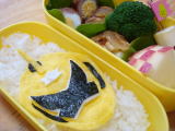 今日のお弁当(平成20年6月24日)昨日スーパーで、ずっと探していた「お弁当シート」を発見! (お弁当シートは、緑、黄色、オレンジの三色の食べられるシート がセットになっているものです) どんなものだろうと、ためしに使ってみることに。 おーちゃんのリクエストで、黄色でいいから、ゴーオンゴールドを 作って〜!ということでした。 確かにはさみで切れるので、すごく扱いやすいのですが、それだけで キャラを作ると、なんだか薄すぎて、全く迫力がない〜!! いつも薄焼き卵をあまり薄く 焼くことが出来ず、あぁ〜!と思いながら使っているのですが、案外私の焼く薄焼き卵 のほうが食べ応えも(笑)見栄えもよい!?なんて思ってしまった出来でした(爆) ゴーオンゴールドはもともとがすごく立体的なメットなので、私の腕じゃ、どちみちそんな きちんとしたものは作れないんだけど・・・。 *今日のお弁当* ・ ゴーオンゴールドキャラシート (お弁当シート・黄、はんぺん、のり) ふりかけ持参 ・ 鶉のお肉巻き(鶉の卵、豚肉) ・ 野菜炒め(玉ねぎ、にんじん、しいたけ、キャベツ) 、ブロッコリー、 プチトマト ・ りんご 、 キャンディーチーズ |