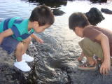 | 英語で遊ぼうイベント/琵琶湖博物館(平成20年7月31日) 先日WFCからはがきが届いていて、サマーキャンペーンを開催するところで合わせて 英語ミニイベントが行われるということだったので、お隣滋賀県の守山まで家族で 行って来ました。 車で一時間くらいのアルプラザの一角で行われていたイベント。 おーちゃんときーくんは初めてのG−Player対応のファンウィズワーズを満喫していました。 これおもしろい〜!欲しい〜!と言い出したおーちゃんですが。我が家は無理です(爆) おーちゃんはライムCAPを被って行っていたのですが、これをアドバイザーさんたちに 褒められる褒められる(笑) 嬉しそうなおーちゃんでした。 ミニイベントは本当にお子様向けだったのですが、おーちゃんも恥ずかしいながらも 楽しんでいたよ♪ 終わった後、持って行ったお弁当をフードコートで食べて、守山を後にしました。 帰りに琵琶湖博物館に寄ることに決定して、博物館へ。 夏休み最後の日とあって、結構 な人がいた〜。 おーちゃんも楽しそうに館内をめぐっていました。 車の中で昼寝に入った きーくんですが、着いても寝てた・・・・。 途中で水族館に入るので無理やり起こすと、 割と機嫌よく回り始めたのですが、飽きるのも早かった・・・・。 一通り回って帰りました。 「またゆっくりこような〜!」と言っていたおーちゃんです。 |