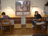 勉強机がやってきた!/じいじの誕生会(平成20年11月23日) 来年1年生になるおーちゃん。あまり机やランドセルには興味が ないのだけれど、(ご飯を食べてる机で勉強すればいいやん。と 言っていた)我が家にも勉強机がやってきました。 ネットで注文して2つで2万円!安い! 今日パパがせっせと組み立ててくれました。 周りでお手伝い したいけど、邪魔にしかならない二人をなだめながら結構時間が かかったので、大変だったと思います。 その後、机に合う椅子を買いにニトリへ。椅子二つの値段と、机の値段があまり 変わらない!(爆) 机で何するの?と二人に聞くと、おーちゃんは「どんぐり(お絵かき算数)!」きーくんは 「べんきょう〜」と言っています。 そんなきーくん、机に向かって座って電気をつけて 手をマイク代わりに握り締め、ゴーオンジャーの歌を歌っていました。「きーくん、 何してるの?」と聞くと「歌の練習〜。べんきょうや〜!」って言っていました(汗) おーちゃんは机でどんぐり倶楽部の問題をしたり、図鑑をみたりしています。 きーくんは、くもんの「はじめてのきりえ」をもくもくと切っています。 今週25日はじいじの誕生日です。 なのでじいじの誕生会をしました。 夕食はじいじの好きなモツ鍋をママが作り、ケーキをばあばが買ってきてくれました。 おーちゃんときーくんからのプレゼントは折り紙。パパとママからは「ねねの湯」の 回数券をプレゼントしました。 モツ鍋もなかなかする機会がないけど、本当においしい! |