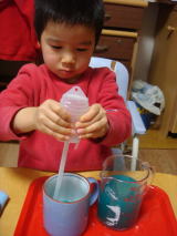 | ランドセルを買いに(平成21年2月6日) 今日はおーちゃんの幼稚園が、明日の作品展準備のためお休みでした。 朝、ママが家事をする間、絵の具でお絵かきをしたりスポイトでの水移しをひたすらやって いた二人です。家事の後はばあばも仕事が休みだったので、一緒にランドセルを買いに 行ってきました。 おーちゃんはこんがいいと言ってみたり、グリーンがいいと言ってみたり。 結局天使の羽のランドセルだったら何でもいいらしいです(汗) で、いいなと思った ランドセルは在庫がなく問い合わせてもらうことにしました。 そのあとは平和堂でお昼ご飯をばあばにご馳走になって帰ってきました。 結構ぐっすり昼寝をしたあと、またスポイドで遊んだり絵を描いたり。 そうこうしてたら いとこのしんちゃんが来る時間になりました。 3人でもスポイドの水移ししてたよ(笑) 今日はしんちゃんがばあばのところにお泊りだったので、3人をお風呂に一緒に入れ ました。 ここでもスポイド遊びに明け暮れる3人・・・。 |