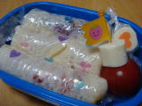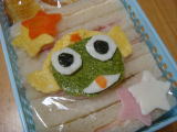 体操クラブ最終日(平成21年3月16日)今日は半日保育だったのですが、先月分の振り替えで1時から 体操クラブだったのでお弁当を持たせました。 *今日のお弁当* ・ ケロロ軍曹キャラシート (薄焼き卵、薄焼き卵ほうれん草入り、にんじん、卵白焼き) ・ サンドイッチ(ジャム、ハム、チーズ) ・ オレンジ 今日は最終日だったので、みんなでするゲームの時間を普段より多くとって、わいわい と楽しく走り回っていました。最後には先生から修了証書をいただきました。 明日はいよいよ卒園式。 なんだか心にぽっかり穴が開いた気分で・・・・・。 寂しいです。 |