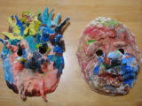 造形教室体験(平成21年3月23日)今日は午前中、家で過ごしてお昼ご飯を食べた後幼稚園に 写真の申し込みを持って行きました。 が、幼稚園は閉まっていて誰もいなかった・・・(汗) また明日 来ようねと言って幼稚園後にしました。 その後、図書館へ。16時から図書館隣のカルチャーセンター である造形教室の体験を申し込んでいたので、時間まで絵本を 読んで過ごしました。 おーちゃんは家でも廃材でいろいろ作ったり、絵の具を使って絵を描いたりするのが 好きです。 パパが「工作とかお絵かきが出来る教室があるよ」というと「行って見たい!」 と大興奮!! なので今日の体験になりました。 体験は5人で、すでにこの教室に入っている子が二人で始まりました。今日はお面を作ろう ということで、紙粘土とプラスチックの顔の形が用意されていました。 おーちゃんは先生から「動物でも人でも鬼でもなんでもいいんだよ」と言われて鬼の面を 作ることにしたようです。作っていくうちにいろいろイメージが膨らんできたようで、 1時間ちょっと集中して、おーちゃんらしいおめんができあがりました。ママ的には笑える ようなおめんなのですが(笑)先生に「すごくいい感性をもっているね〜。素敵だね♪」と 言ってもらって嬉しそうなおーちゃんでした。すごく楽しかったようで「ここに通いたいなぁ」と 言っていました。 月2回だし、少人数だし、先生の持って行き方とか声のかけ方 (集中してきだしたらそっと見守ってくれている姿勢とか)もとてもよかった なぁというのが感想です。 いくつか造形教室を体験して決めたいと思います。 ちなみにきーくんもついていったのですが、もう初め教室に入ったときからやりたくて うずうず(笑) 兄ちゃんに「こうすればいいんじゃない?これ使えばいいんじゃない?」と ちょっかいだして邪魔していたのですが、先生が材料があるので少し難しいかもしれません がよかったらやってみますか?と言ってくださり(もちろん体験費を払います・・苦笑) きーくんもママの手伝いをもらいながら楽しく作っていました〜♪ 写真のおめん、左がおーちゃん作で右がきーくん作です。 |