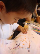 七夕参観(平成21年7月3日)今日は七夕参観と、5月にインフルエンザの影響で延期に なっていた給食参観でした。 子供たちが魔法の絵の具でマーブル模様をつけた画用紙 に好きな絵を描いて、七夕の飾り(お願い事を書く)を作りました♪ きーくんは家族4人分の顔を書いてチョキチョキ。 裏には お願い事を書いたんだけれど、きーくんのお願い事とは・・・・・・ 「おすしが食べたい」でした(爆) 先生もインタビューのときに 笑ってたよ(笑) 「きーくんのお願い事は何ですか??」 「はい。おすしが食べたいです」 「何のお寿司が一番好きですか??」 「え〜と、いくらです。」 というインタビューでした(笑) ママのお願い事は「健康でいつもニコニコ顔でいられますように☆」 この工作のあと、お遊戯室でレジャーシートをしいて、お友達と一緒におべんとう給食 を食べました。 きーくんは仲良しのSくん二人と一緒。 周りのお友達がゆっくりと食べて いる中、「おいしいね〜」と言いながらさささ〜と食べ終わるきーくん・・・・・。 おーちゃんはお弁当給食に苦労していたみたいなのですが(残しが多かった)きーくんは 楽しめているようです♪ よかった〜。 1時過ぎに参観は終了〜。 お迎えの2時半まで、お友達のママさんたちと近くの「さと」 でお茶をしました。 |