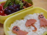 今日のお弁当(平成21年7月7日)昨日、夜に「きーくん、明日は北海道のお弁当がいいな〜」 と言い出しました(笑) 朝、きーくんに地図パズルの箱から 北海道をクッキングシートに写してもらい、のりを切りました。 それにしても、北海道のお弁当って・・・・。相変わらず変な子 だ・・・・・・。 *今日のお弁当* ・ 北海道オムライス(薄焼き卵、のり、アルファベットパスタ) ・ 豚のしょうが焼き ・ ニンジンとピーマン、じゃこの甘辛いため ・ すもも、ぶどう 今日はおーちゃん、朝「ふらふらする」と言って元気がありませんでした。 熱はないの ですが(36.9度)ゴロゴロしていたおーちゃん。 学校をお休みしました。 午前中は しんどいのか全然動きませんでしたが、お昼ぐらいになりだんだん元気になってきた〜。 お昼から小学校の役員の仕事があったので、もししんどそうだったら保健室に預けて 仕事をしなくちゃなぁと思っていたのですが、内職みたいな仕事をおーちゃんも 手伝ってくれたよ(笑) 元気になってよかった〜! |