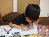 | きーくん4歳になりました♪(平成21年7月18日) 今日できーくん4歳になりました〜♪ 「もう4歳になったし!」と得意げなきーくんです。 切迫早産の気があり、安静だった妊婦時代が懐かしいです。 幼稚園に行くようになり、たくさんの歌を覚えてきて歌っています(今は南の島のハメハメハ 大王をドラゴンボールのかめはめは〜の振りをつけて歌っています・・・何か違う) お友達の名前も段々と口から出てくるようになり、幼稚園がかなり楽しい様子。 プラレールとトミカが大好き。 好きな食べ物はおすし(特にいくら)。 おーちゃんと違い、水に顔がつけられない。 花や植物が好き(今幼稚園の野菜チェックは 毎日です) とてもフレンドリーで誰にでも声をかけます。朝自転車で幼稚園までいく途中 にも通りすがりの人々に「そこの人!おはよう〜〜!きーくん今幼稚園に行ってるねん。」 と声をかける・・・・。 おもしろい人です。「What do you want to be when you grow up?」 と聞くと「When I grow up , I want to be a おすしやさん〜」と言います。 これからも元気に大きく育っていってほしいな☆ 朝は、おーちゃんとどんぐり問題をしたり、英語のワークをしたり、ゆっくり。 おーちゃんは その後外に遊びに行き、きーくんは昼寝。 おーちゃんも、おなか痛い〜と言ってしばらく 遊んでいたものの帰ってきてお昼寝。お昼寝の間、ばあばに二人を頼んで買い物に 行ってきました。 今日の夕食はきーくんのリクエストの手巻き寿司。 じいじとばあばも お誘いしてみんなで食べました。 二人がお昼寝から起きたら、おーちゃんが「きいくん おたんじょうびおめでとう」と部屋を飾り付けてくれました。 きーくんも真似をしてべたべたと 何やら窓に貼り付けていたけれど(汗) 夜はみんなでワイワイパーティをしました。 ケーキはばあばがチョコのデコレーション ケーキを買って来てくれました♪ ありがとう! ばあば(^^) ビデオを撮っていたら、いい写真があんまりなかった・・・・。 ご・ごめん!きーくん。 パパとママからのプレゼントはプラレールの電車と線路セット。 ばあばからはこの間 プラレールの貨車のセットをもらっています。 おーちゃんからはお手紙。書いていたのを 知りませんでしたが、きーくんが読めへんと言うので変わりに読むと「きーくんいつもあそんで くれてありがとう」と書いてありました。鹿児島のルーからはダンボールにごっそり お菓子やおもちゃが送ってきました。ルー、いつもありがとう〜♪ きーくんは幸せものですね♪ |