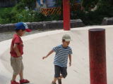 皇子山公園へ。(平成21年7月12日)今日は急遽4人で皇子山公園に行くことに。 ここは駐車場代 もいらないし、アスレチックもあるしいい〜♪ きーくんもアスレチックを楽しんでいたよ〜♪ おーちゃんは 画像のあり地獄(!?)でグルグル走るのに何度かチャレンジ していたけれど出来ず(汗) 1時間半ほどで公園を後にしました。 王将でお昼ご飯を食べて、そのままトヨタへ。6ヶ月点検で オイル交換をしてもらいました。 その後ヤマダ電機へ。デジタルテレビを購入。 |