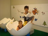 | お出かけ(平成21年8月22日) 今日は朝から、子供たちはじいじとばあばにポケモンの映画に連れて行ってもらい ました。すごく楽しみにしていたので、二人とも張り切ってアルセウスのTシャツを着て いったくらいです(笑) 2時前に「楽しかった〜♪」といって帰ってきました。きーくんは「キャラメルのポップ コーン食べた」とずーっと言っていました(笑) じいじ、ばあばありがとう〜! |