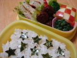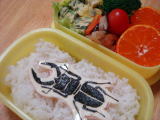 今日のお弁当/英語参観(平成21年11月10日)*今日のお弁当* 今日はリクエストがなかったので勝手に琉球くわがた弁当に しました(笑) ・ くわがたキャラシート(のり、チーズ、ハム) ・ オムレツ(卵、ベーコン、ほうれん草) ・ 切り干し大根の煮付け ・ ブロッコリー、プチトマト、みかん 今日はシスター英語に久しぶりに参加。相変わらず速くて聞き取るのが難しいです(笑) その後、10時40分からきーくんの英語参観でした。 みんな楽しそうに体を動かしてたよ。 きーくんは、実習生らしき先生にべったりでまとわりついていました(爆) ビデオを撮ったけれど、手がプルプルしてしんどかった〜(汗) そのあと、お友達ママの家におよばれしてお茶をしながらおしゃべり。話は尽きず、そのママ ランチをしに行きました。 久しぶりにたくさんお友達とおしゃべりしてストレス発散に なりました♪ 楽しかった〜♪ |